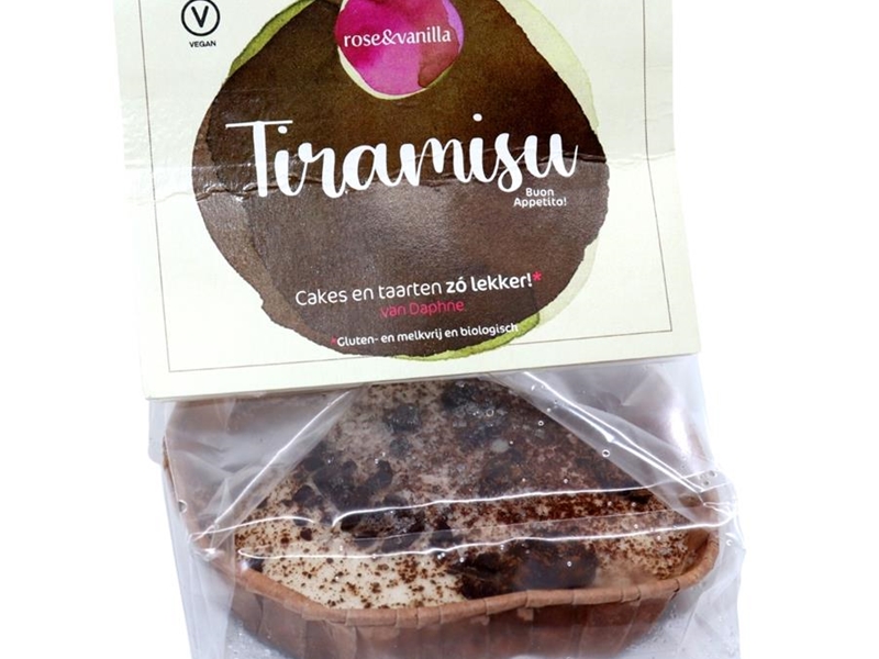 Wat een uitvinding van de Italianen: tiramisu! Rose&vanilla geeft aan dit klassieke recept een eigentijdse vegan draai. Een zoet haverkoekje doordrenkt met volle espresso, daarop een romige vulling, stukjes chocolade uit Ecuador en natuurlijk cacao. Een smaaksensatie!