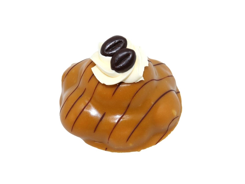 Luchtige harde wener koekbodem bodem met daarop en net zo luchtige mokka crème. Dit geheel dopen we in een mokka fondant en werken we af met chocolade strepen. Het gebakje decoreren we met een rozet crème en mokkabonen.